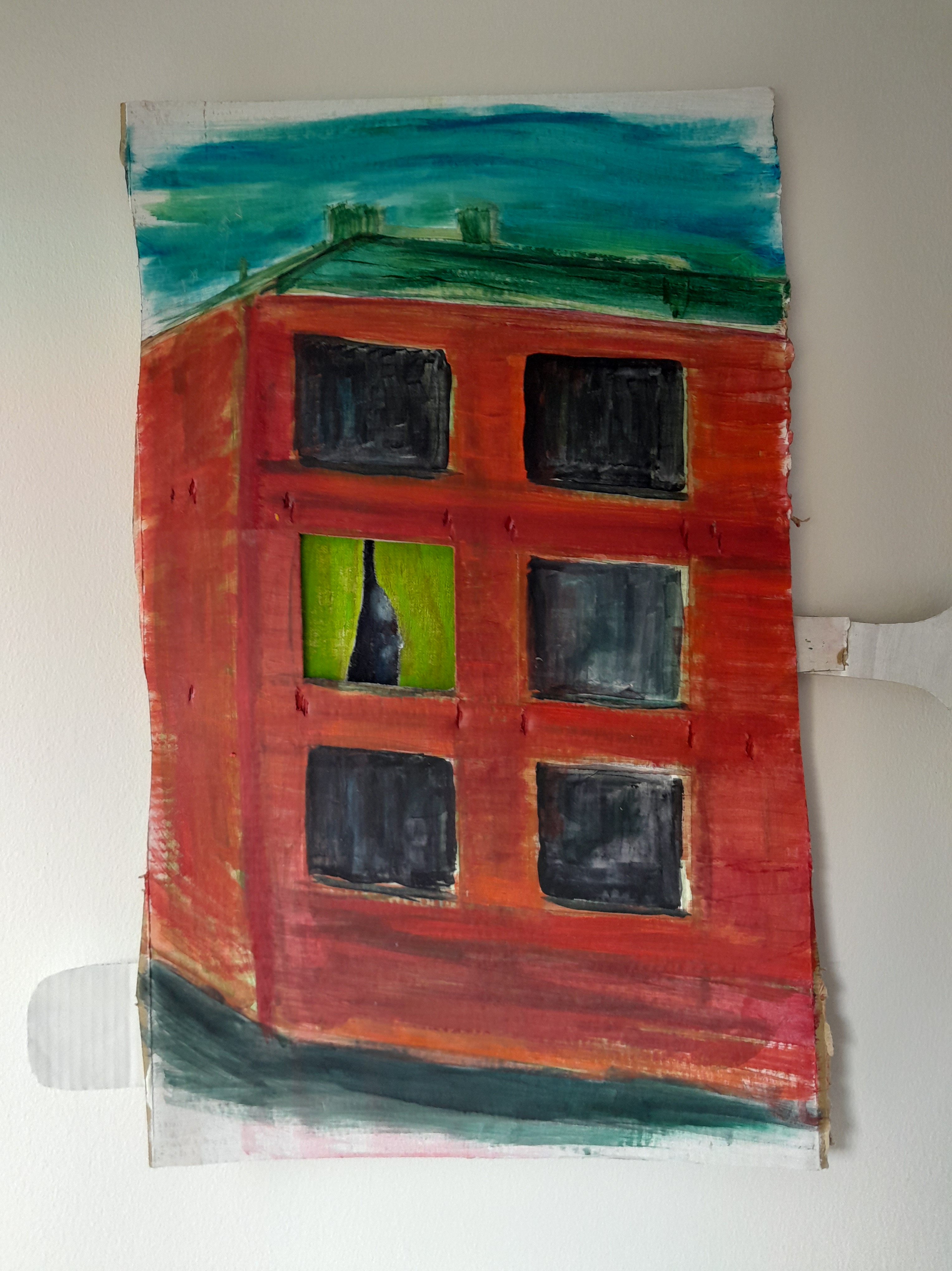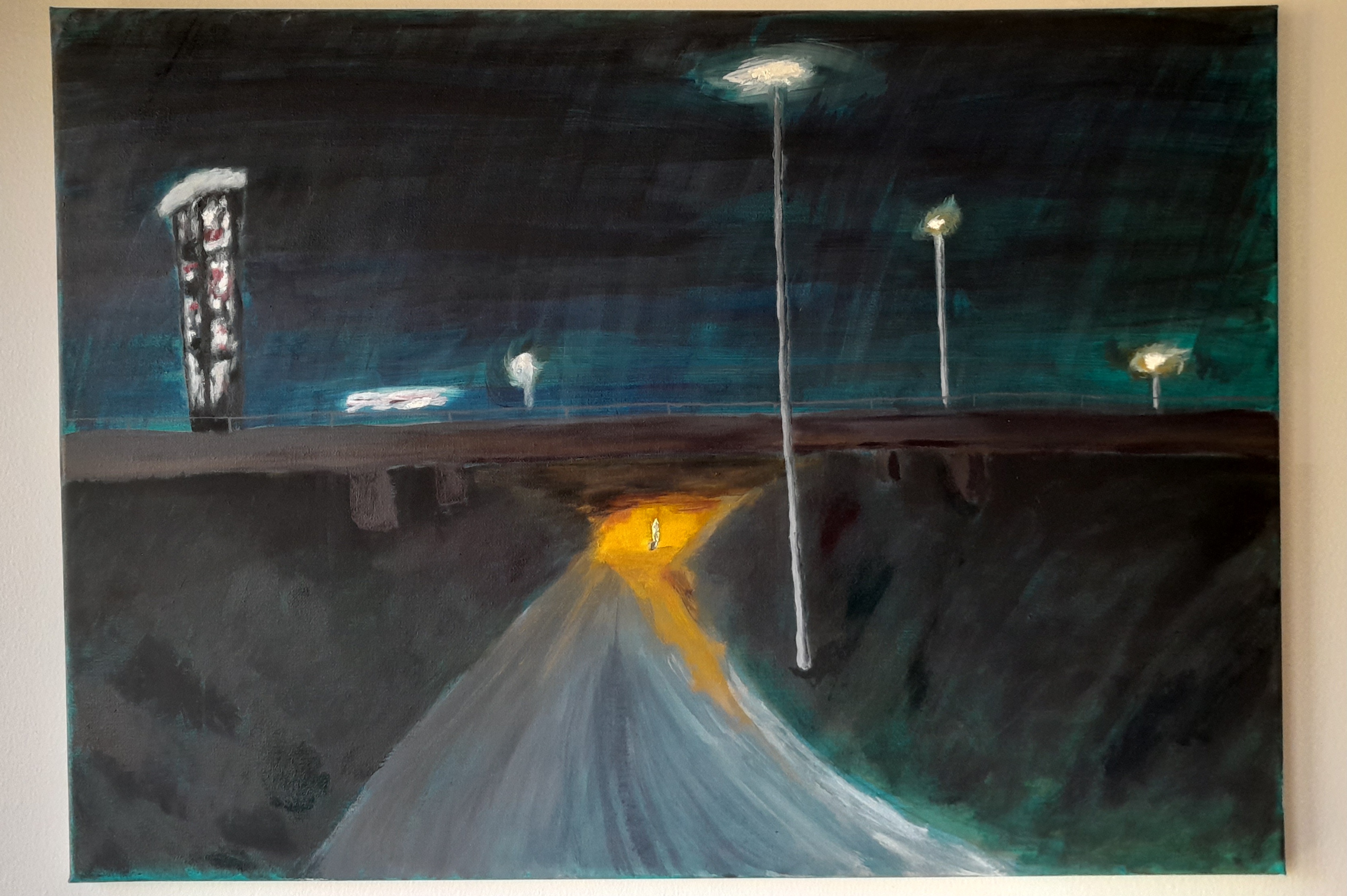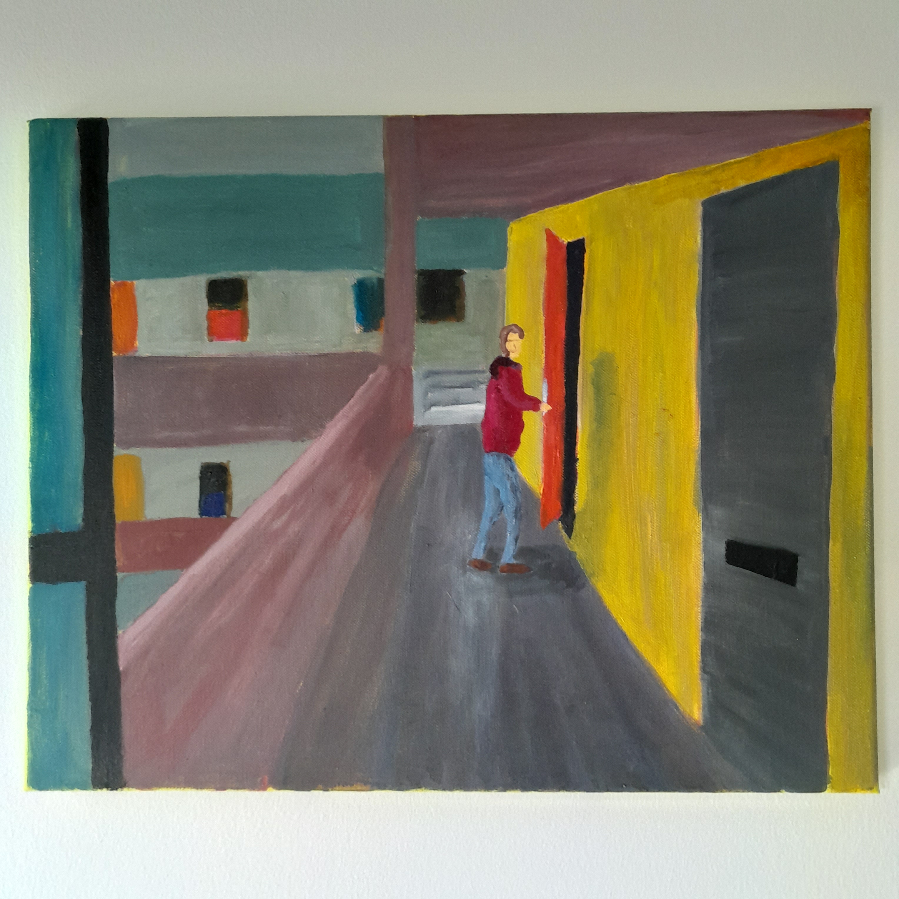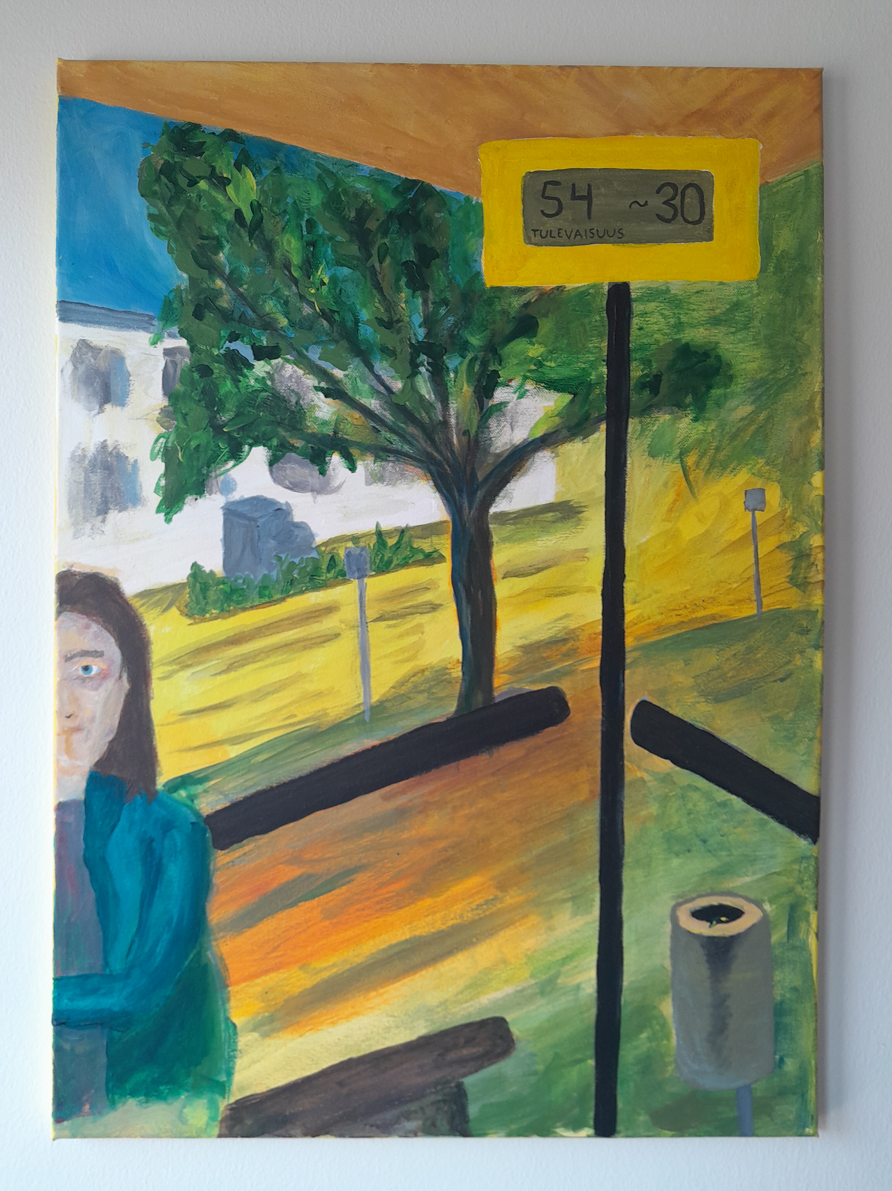 Näyttely on oikeastaan öljy- ja akryylimaalauksista koostuva sarjakuva, jonka voi lukea monella tavalla. Kuvakerronnassa kiehtoo, että yhteen kuvaan voi liittää monta näkökulmaa ja kokemusta. Jos minusta jokin tuntuu tältä, toisen kokemus samasta voi olla hyvin erilainen, jopa täysin vastakkainen. Näiden kuvien ideat ovat syntyneet omasta arjestani Ylioppilaskylässä kävellen, ja niistä voi hyvällä mielikuvituksella tunnistaa joitain paikkoja.