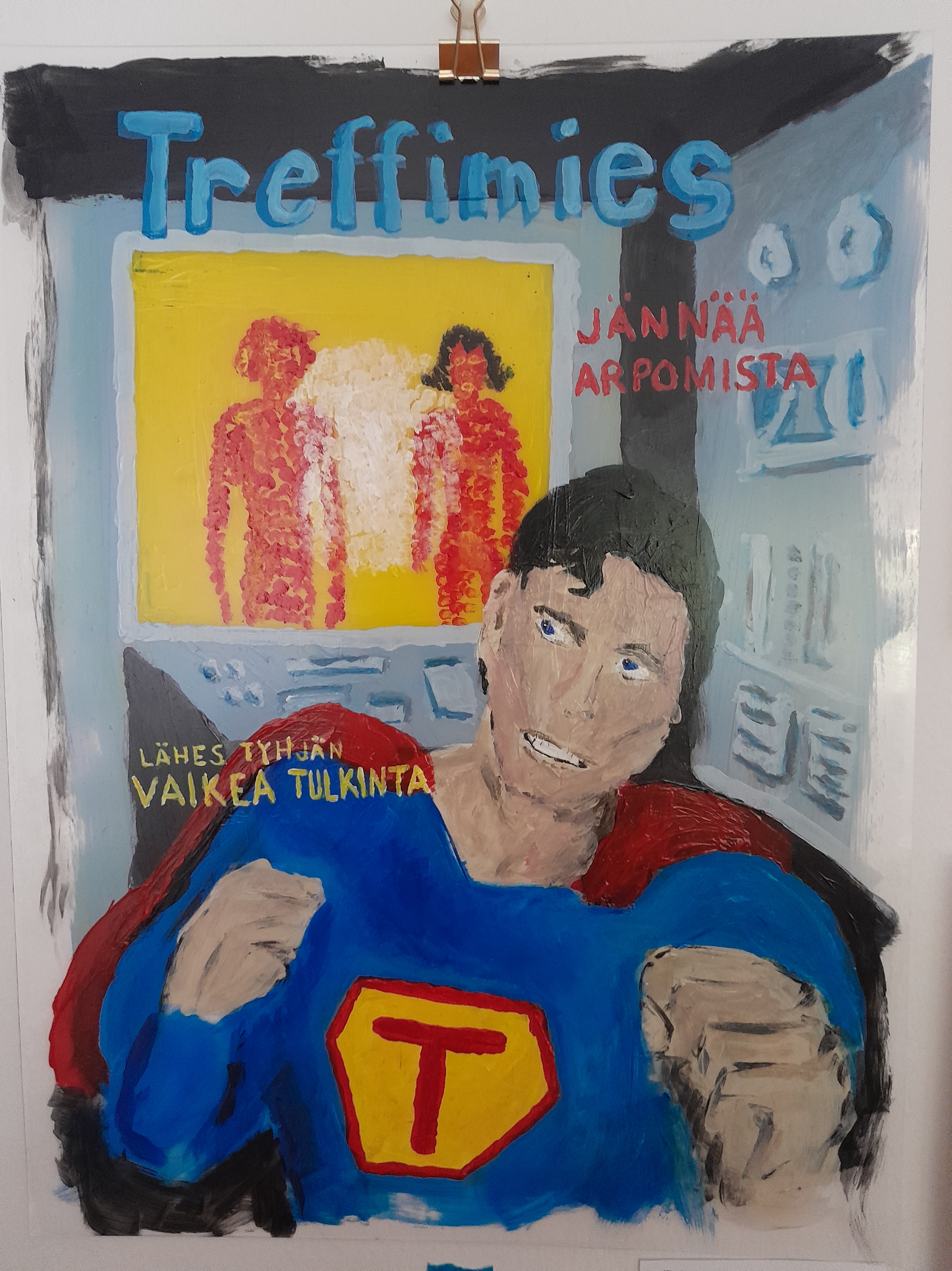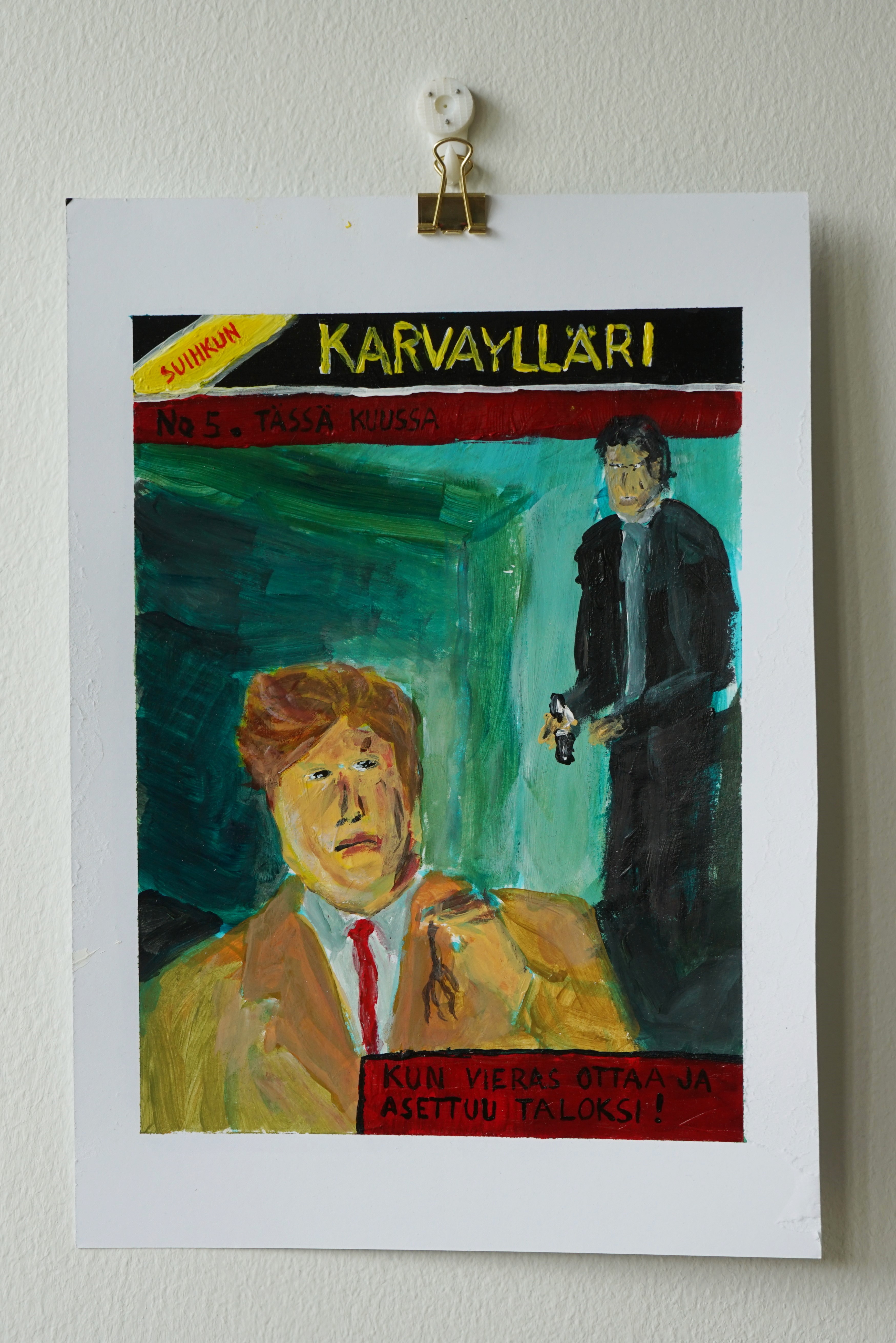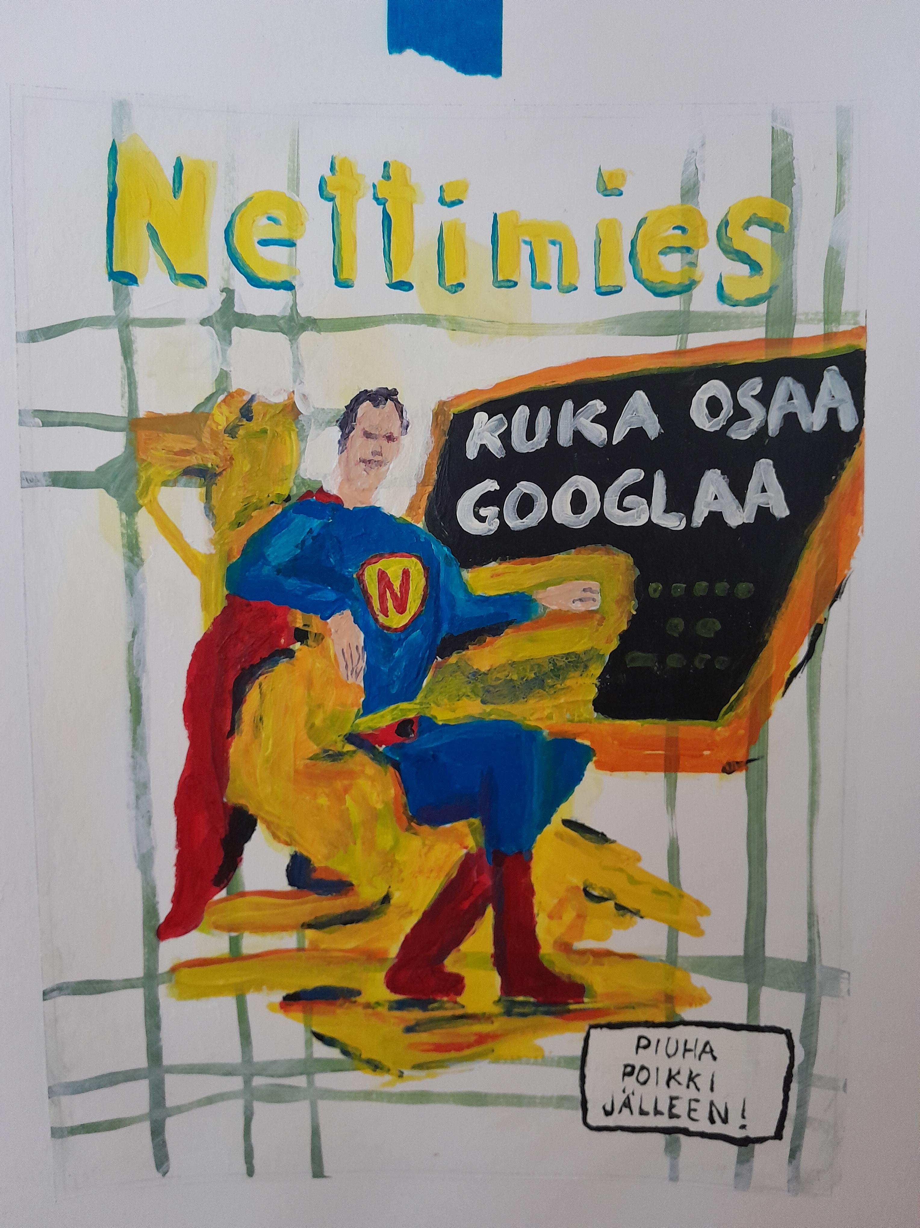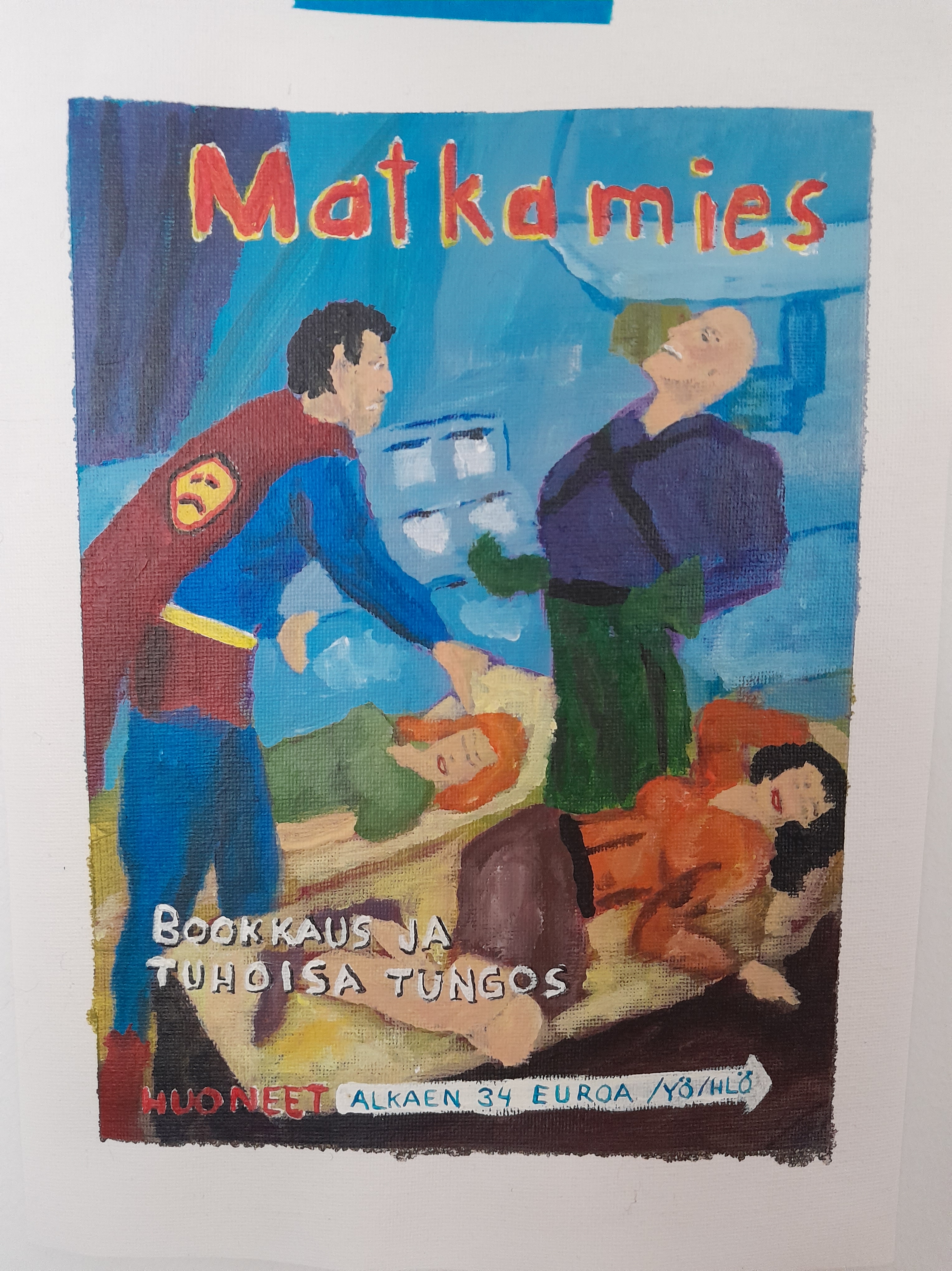 Viime aikoina olen miettinyt sankaruutta sarjakuvien kautta. Tämän sarjan teosten inspiraationa ovatkin sankarisarjisten kannet. Sarjakuvat ovat pääasiassa joitain supersankarisarjakuvia tai korkkareita. Näissä kannet ovat usein melko mahtipontisia, sankari sankaroi niissä ankarasti.