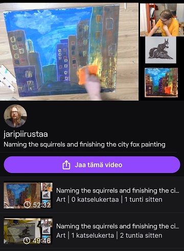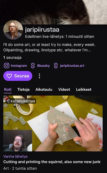Kanava löytyy osoitteesta https://www.twitch.tv/jaripiirustaa ja sieltä ”Tietoja”-välilehdeltä voi lukea suunnitelmiani.