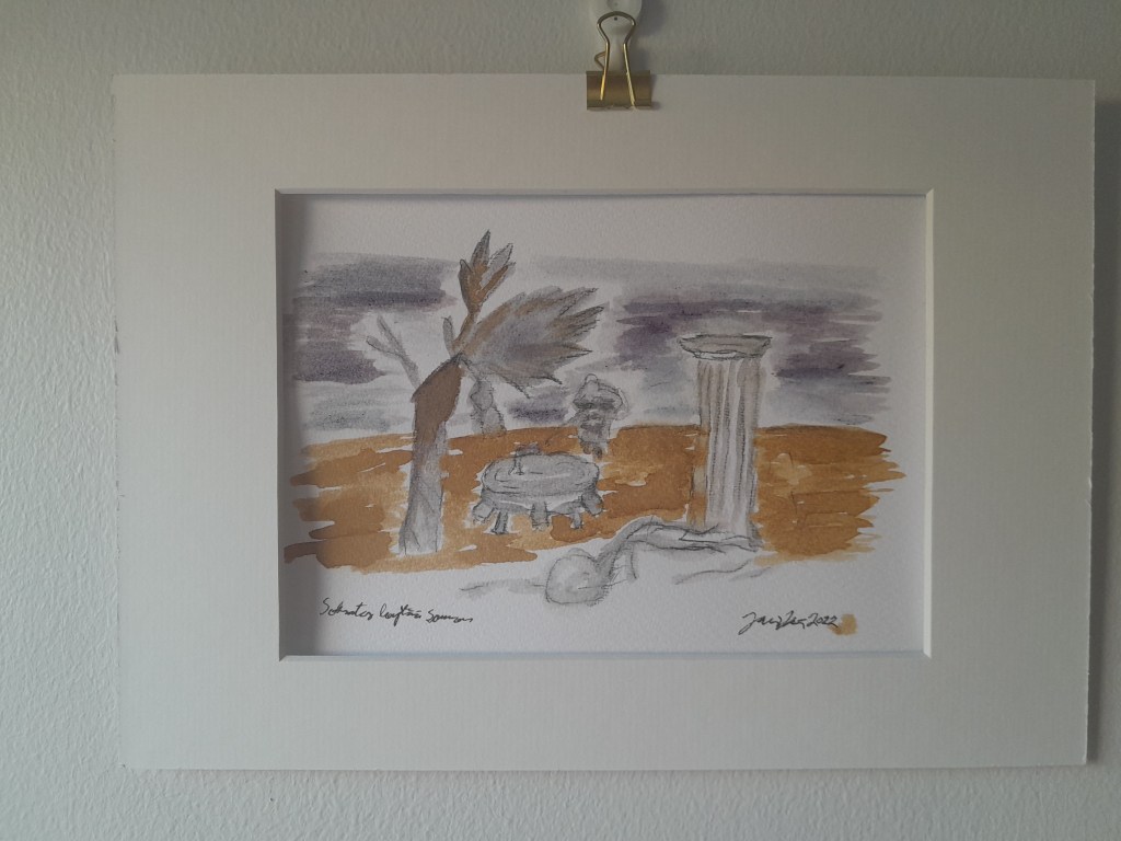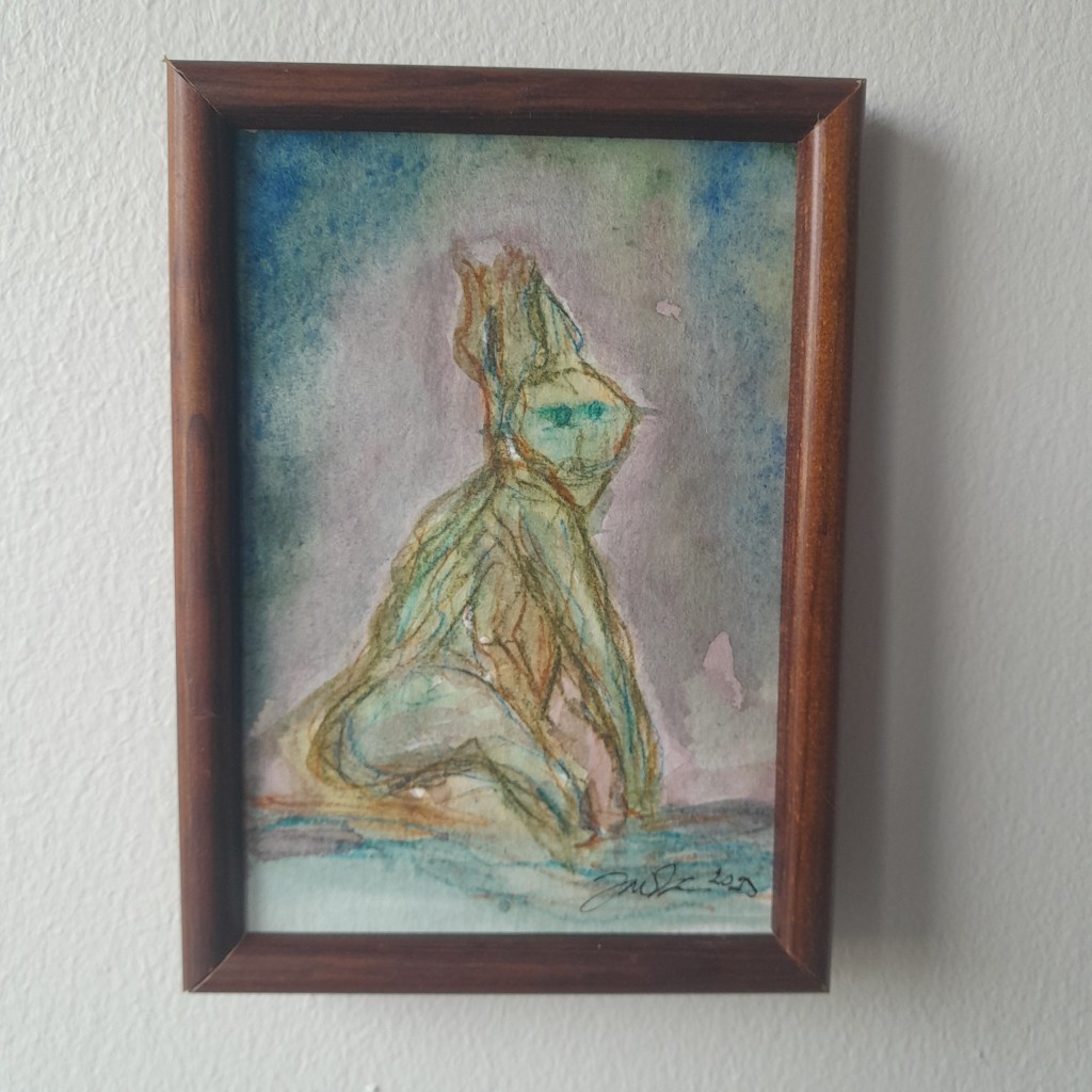 Akvarellityöt ovat osa säännöllistä taiteellista ilmaisuani. Näissä teoksissa löytyy usein versiointeja tai luonnosmaisia elementtejä, jotka liittyvät muihin tekemiini töihin tai toimivat suunnittelun apuna. Akvarellin maailma kiehtoo minua erityisesti sen arvaamattomassa käyttäytymisessä paperilla. Tämä väline antaa tilaa nopealle ilmaisulle ja spontaaneille luoville päähänpistoille.