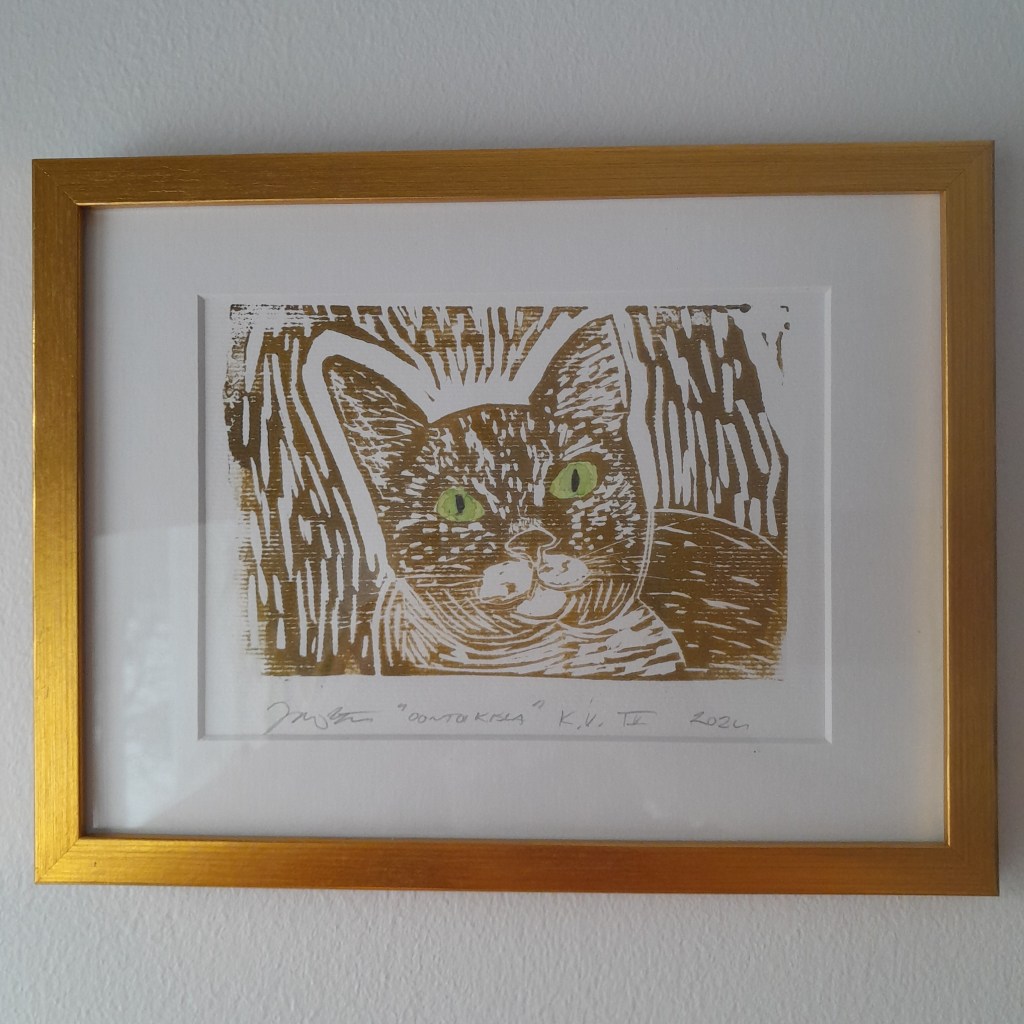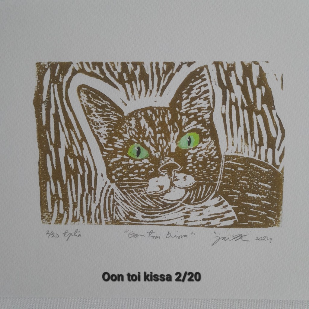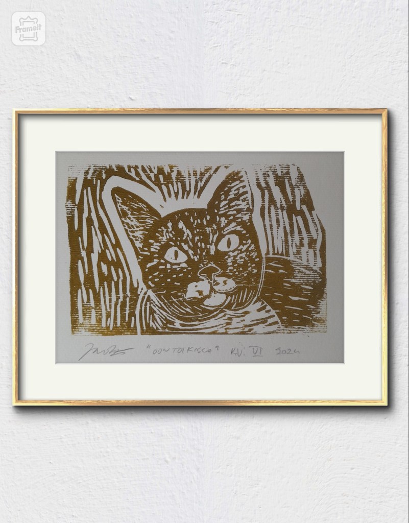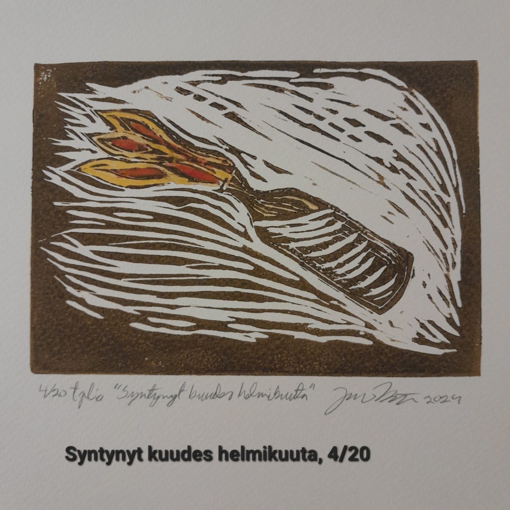 Vuodenvaihteessa 2023-24 löysin uuden intohimon grafiikan maailmassa ja aloin kokeilla linoleikkauksen tekniikkaa. Tämä antoi minulle mahdollisuuden tutustua grafiikan eri ulottuvuuksiin ja ilmaista luovuuttani erilaisella tavalla. Linoleikkauksen kiehtova prosessi tarjosi mielenkiintoisen kontrastin perinteiseen maalaamiseen verrattuna, ja sen myötä sain uusia näkökulmia taiteen tekemiseen.