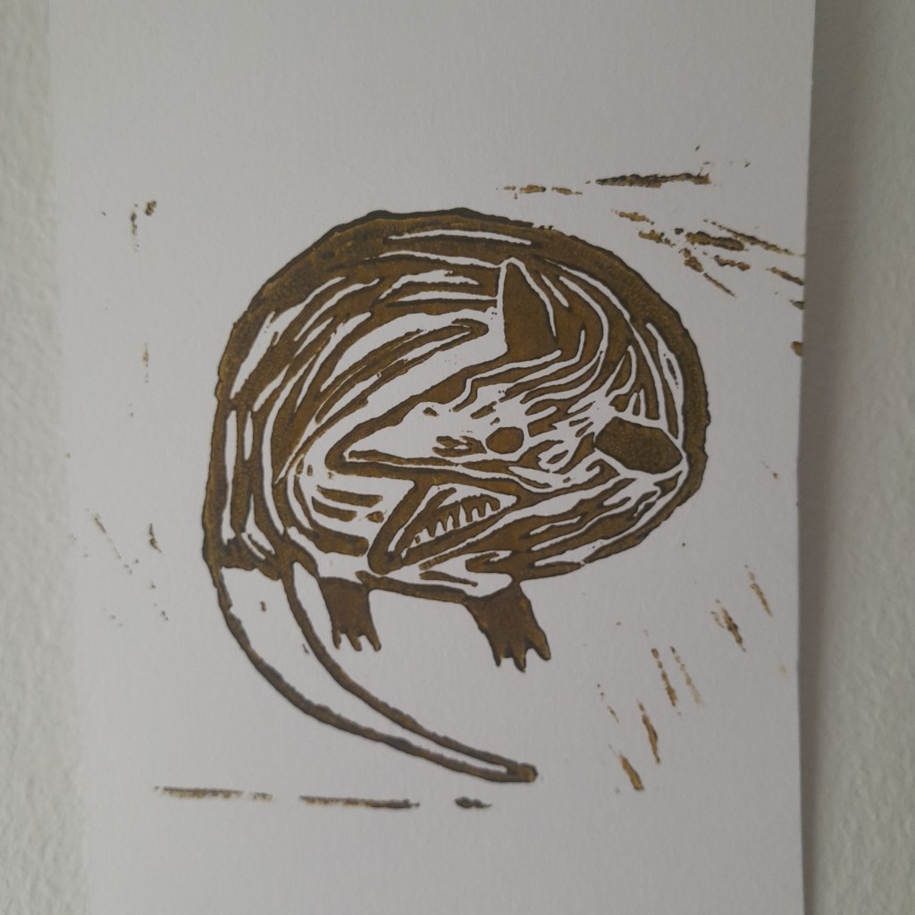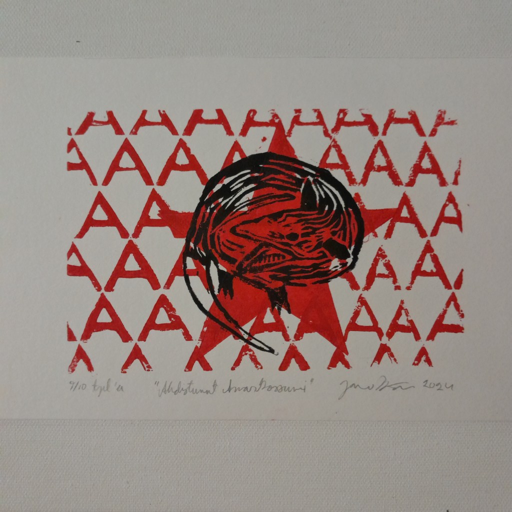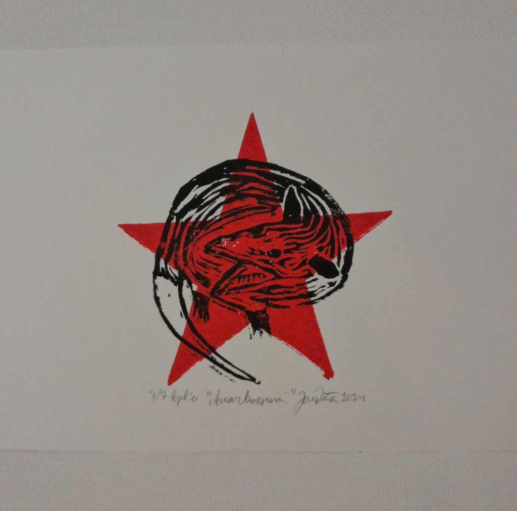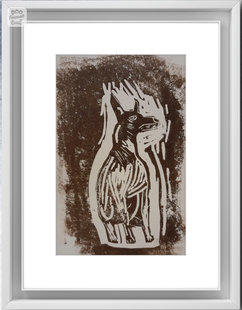 Vuodenvaihteessa 2023-24 löysin uuden intohimon grafiikan maailmassa ja aloin kokeilla linoleikkauksen tekniikkaa. Tämä antoi minulle mahdollisuuden tutustua grafiikan eri ulottuvuuksiin ja ilmaista luovuuttani erilaisella tavalla. Linoleikkauksen kiehtova prosessi tarjosi mielenkiintoisen kontrastin perinteiseen maalaamiseen verrattuna, ja sen myötä sain uusia näkökulmia taiteen tekemiseen.